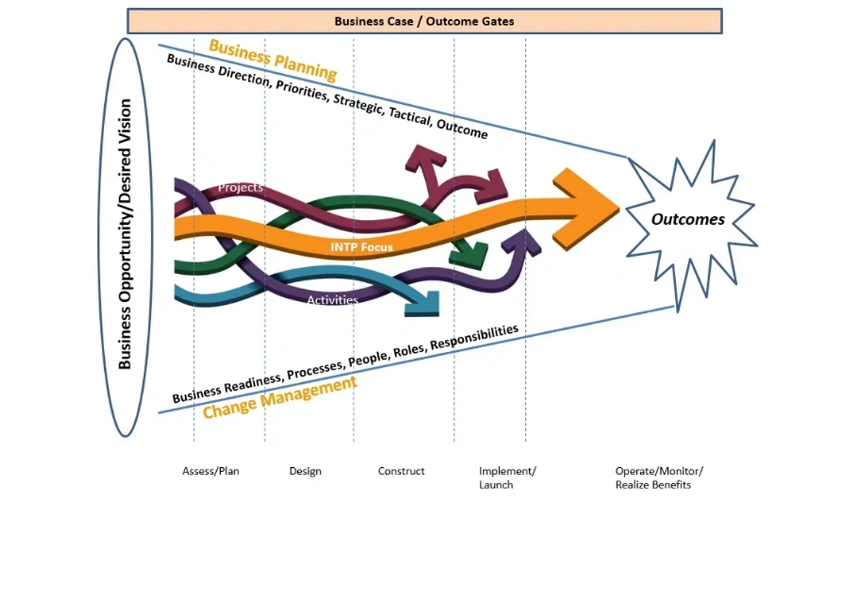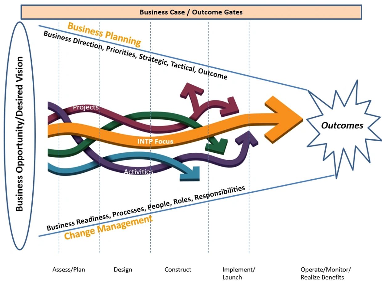 INTP’s approach maintains the focus on the initiative outcomes – the benefits, positive impacts and successes envisioned at the beginning of the initiative and identified in the business case.